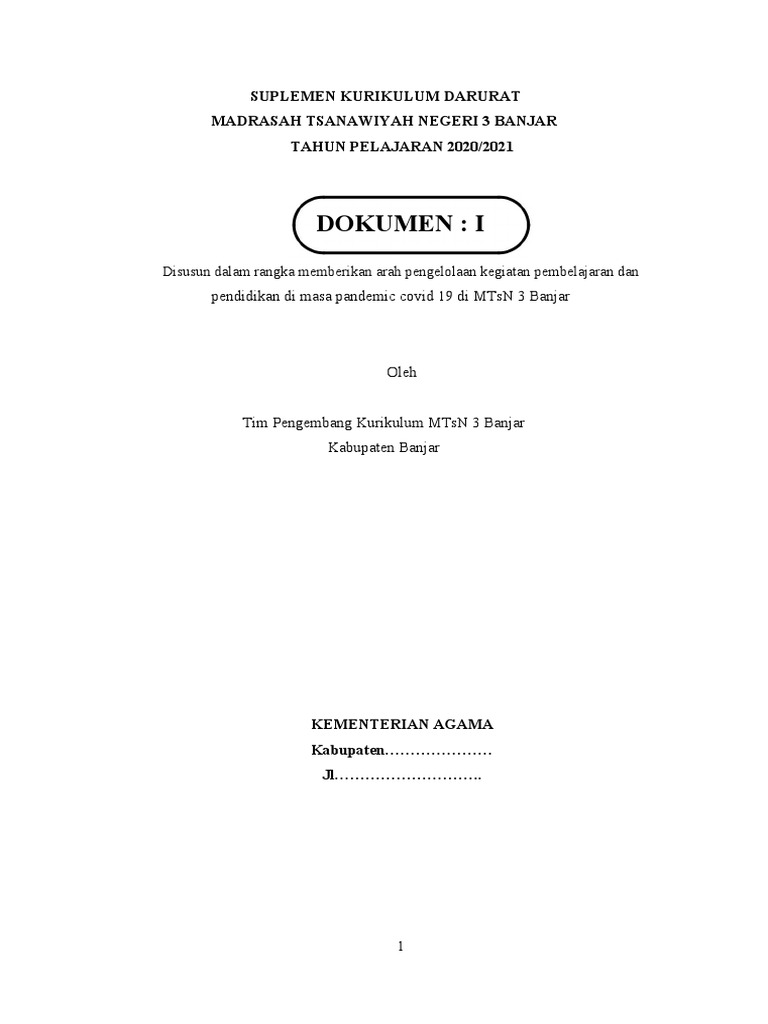 Contoh Dokumen Suplement Kurikulum Darurat Lingkup Dunia Pendidikan