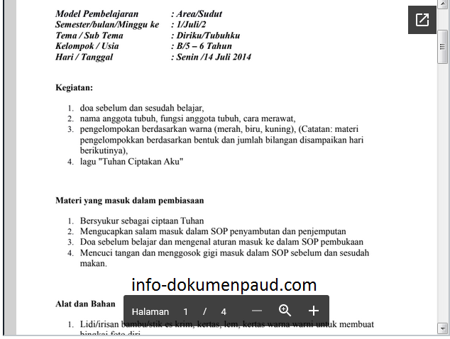 Contoh Rpph Paud Usia 4 5 Tahun Tentang Tahun
