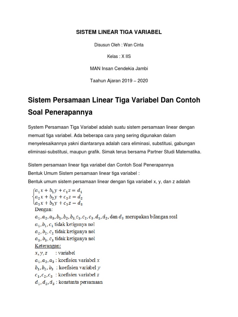 5 Metode Menyelesaikan Sistem Persamaan Linier Tiga Variabel Magister Matematika