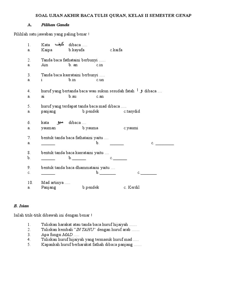 Kumpulan Soal Ukk Ski Sd Mi Semester 2 Genap