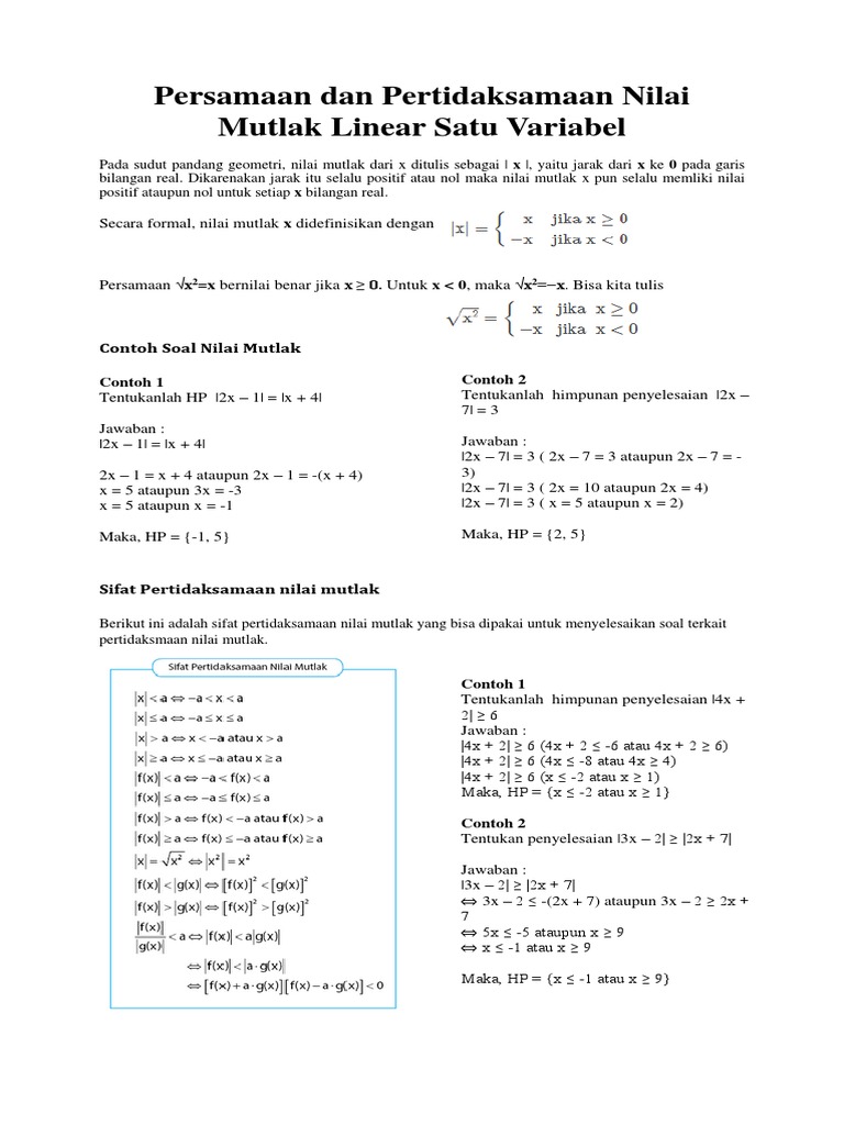 Pertidaksamaan Nilai Mutlak Sifat Sifat Contoh Soal Dan Pembahasan Soal Latihan Defantri Com
