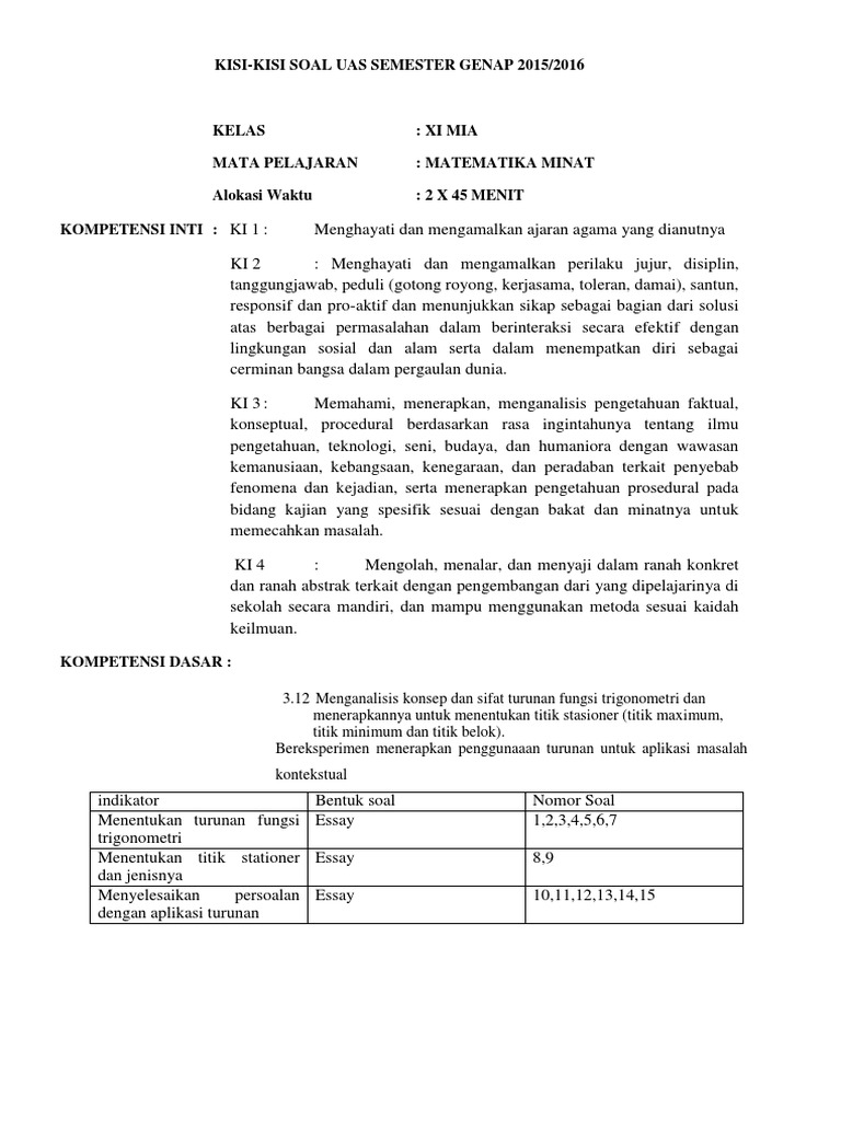 Soal Uas Matematika Peminatan Kelas Xi Semester 1 Contoh Materi Pendidikan