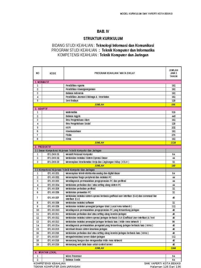 Perdirjen Dikdasmen No 07 D D5 Kk 2018 Struktur Kurikulum Smk Smk Swasta Muhammadiyah 11 Sibuluan Tapanuli Tengah
